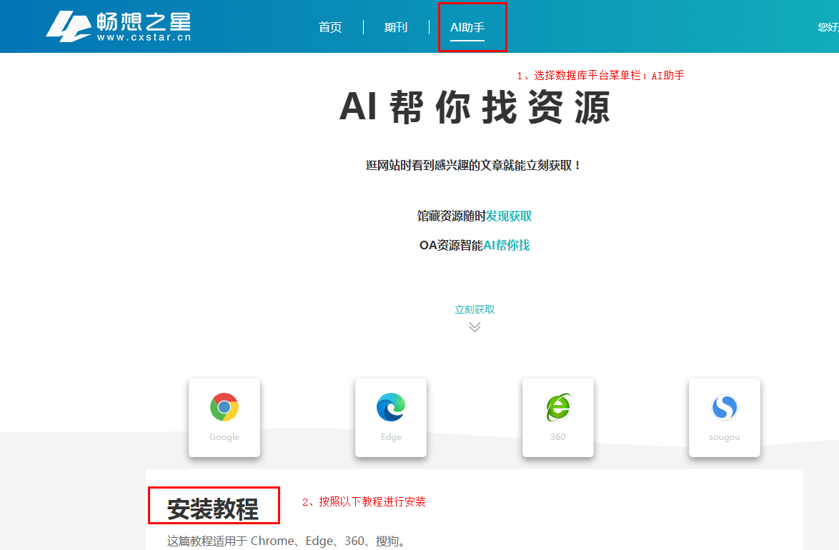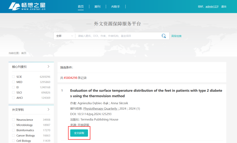 外文资源保障服务数据库平台约5000多万开放获取外文资源、IP范围内可获取全文,配合AI助手,支持在主流论文搜索网站上揭示馆藏资源、开放获取资源,并支持一站式获取资源!